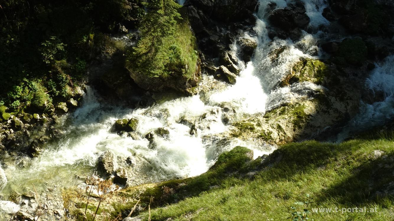Von der Straße geht es nochmal nach rechts, über einen Holzsteg und anschließend im Wald steiler hinauf. Oben angekommen gibt es ein Rastbankerl mit Ausblick zum tosenden Wasserfall. Nach einer Pause geht es wieder retour und nun am rechten Bachufer zurück zum Bärenwirt. Anschließend fast wie am Hinweg zurück zum Ausgangspunkt.