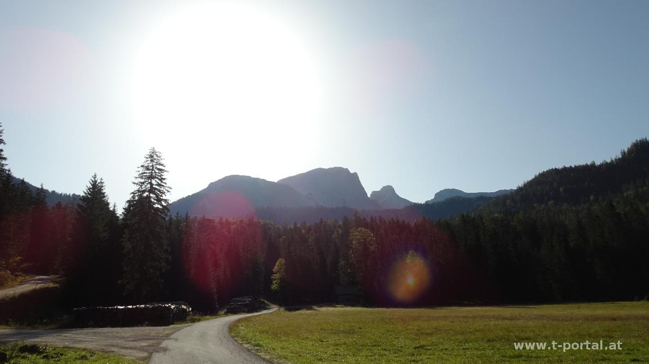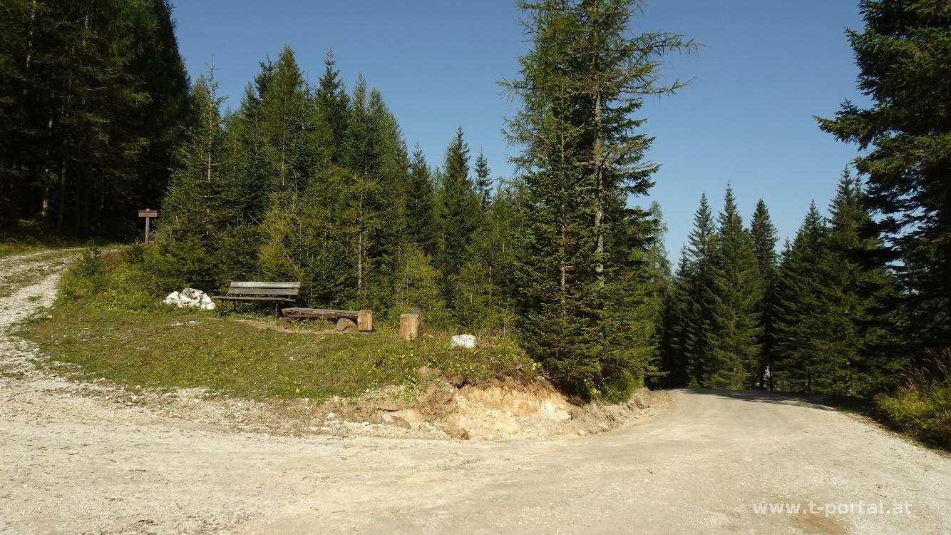 Die heutige Tour führt mich auf einen sehr einsamen Berg - den großen Griesstein. Der Weg zum Gipfel ist nicht beschildert, aber eigentlich recht gut markiert. Unterwegs habe ich eine Frau und sieben Steinböcke getroffen. Ich parke in Winterhöh beim Schilift und folge dort den Pfad durchs hohe Gras in Richtung Hartlsee. Nach dem ersten Stück lande ich aber wieder auf der Straße, folge dieser ein Stück und biege in der nächsten Kurve wieder Richtung See ab. Neben einem Bach geht es nun hoch, über eine Brücke bis zum See. Hier gibt es aktuell eher wenig Wasser, dafür einen kleinen Rastplatz. Auf der Forststraße geht es zurück zur Asphaltstraße. Dieser folge ich nun neben einem Zaun dahin, bis nach dem nächsten Eck der Griesstein ins Blickfeld rückt. Bei einem Brunnen verlasse ich die Straße und folge der Markierung nach links in Richtung Sonnschienhütte. Nun im Wald ein Stück hinauf und auch wieder kurz hinab bis zur Straßenquerung beim Antonikreuz. Auf der anderen Seite wieder in den Wald und auf einem Pfad weiter aufwärts. Nach längerem Anstieg erreiche ich die Kreuzung von fünf Forststraßen namens Kreuzpfäder. Hier gibt es auch eine Bank zum Rasten, von der ich in der Sonne zum Gipfelkreuz des großen Griessteins blicke.