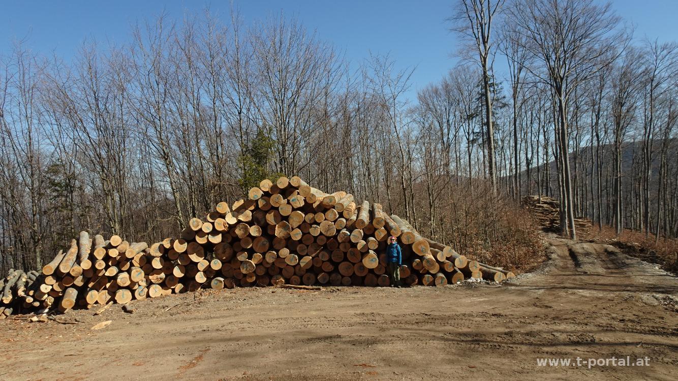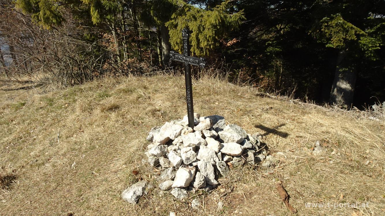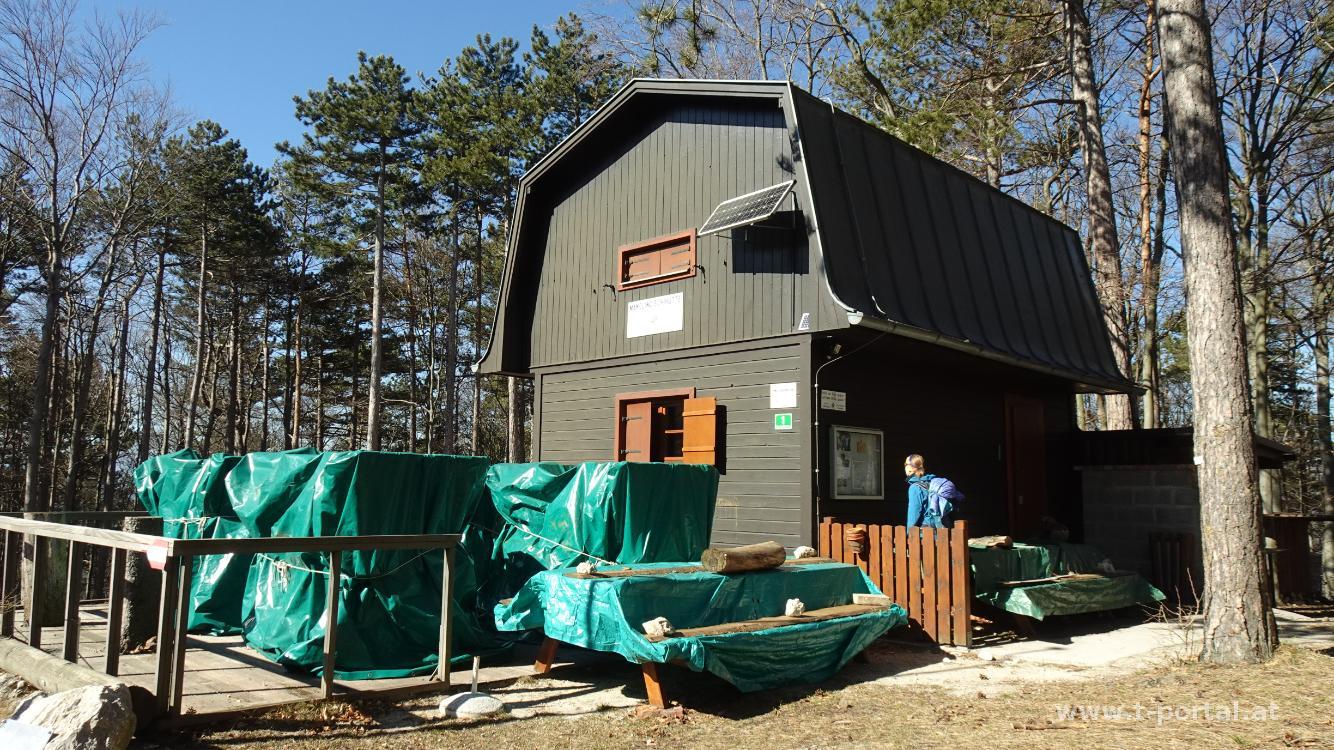 Der zweite Tag am Wiener Alpenbogen begintt nach ausgiebigem Frühstück beim Waxeneckhaus. Wir folgen der Forststraße Richtung Osten und sind über die zahlreichen Häuser, die sich hier herumstehen, erstaunt. Nach einer Rechtskurve erreichen wir auf einen Wanderweg, der bald wieder zur Straße wird und kommen hinab zum Geyersattel. Nun geht es durch den Wald wieder hinauf. Vorbei geht es am "Robert Krenn Kreuz" und der Mandling Skihütte. Nach kurzem Abstieg steigt die Straße wieder an. Weiter vorne verlassen wir sie dann aber wieder und steigen durch ein paar Schneereste auf zur Hohen Mandling.