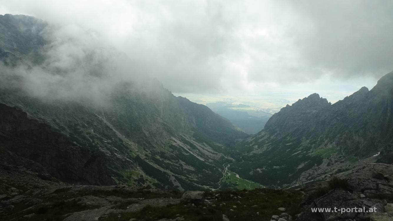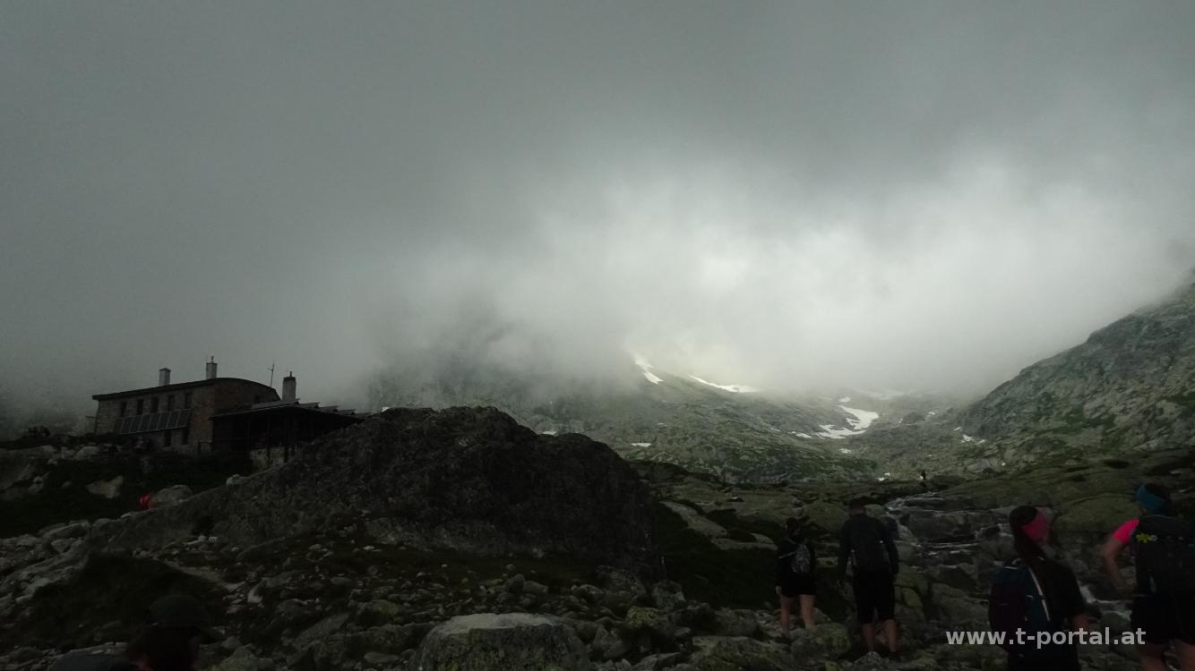 Gemeinsam mit vielen anderen Wanderern erreicehn wir die Téryho Chata. Hier oben ist von der Sonne nichts mehr zu sehen und nach einer Pause bei den drei Seen (Nižné/Prostredné Spišské Pleso/Velké Spišské Pleso) verschwindet die gesamte Umgebung in den Wolken und es beginnt zu nieseln. Wir hatten ursprünglich vor über eine Scharte und das Nebental wieder zurück zu gehen, dies verwerfen wir jedoch aufgrund des Wetters.