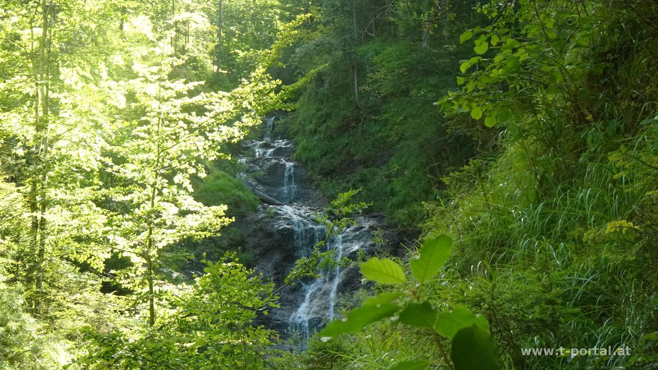 Hier kühlen wir uns mit frischem Nass und nach gemütlicher Rast wandern wir durch die Klamm weiter bis zu deren Anfang. Auf der Asphaltstraße geht es dann nochmal etwas aufwärts und zurück nach Sankt Gallen, wo wir uns noch einen Eisbecher gönnen.