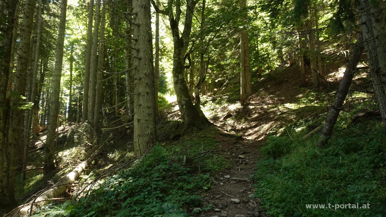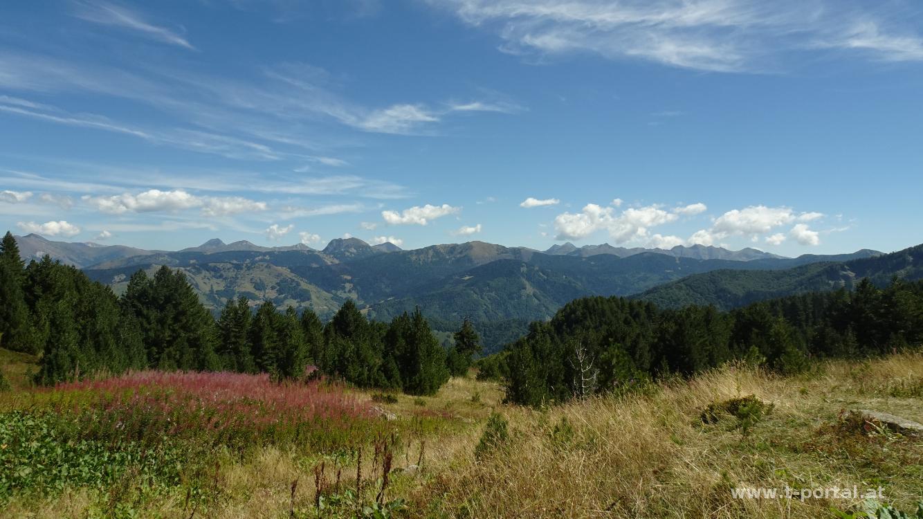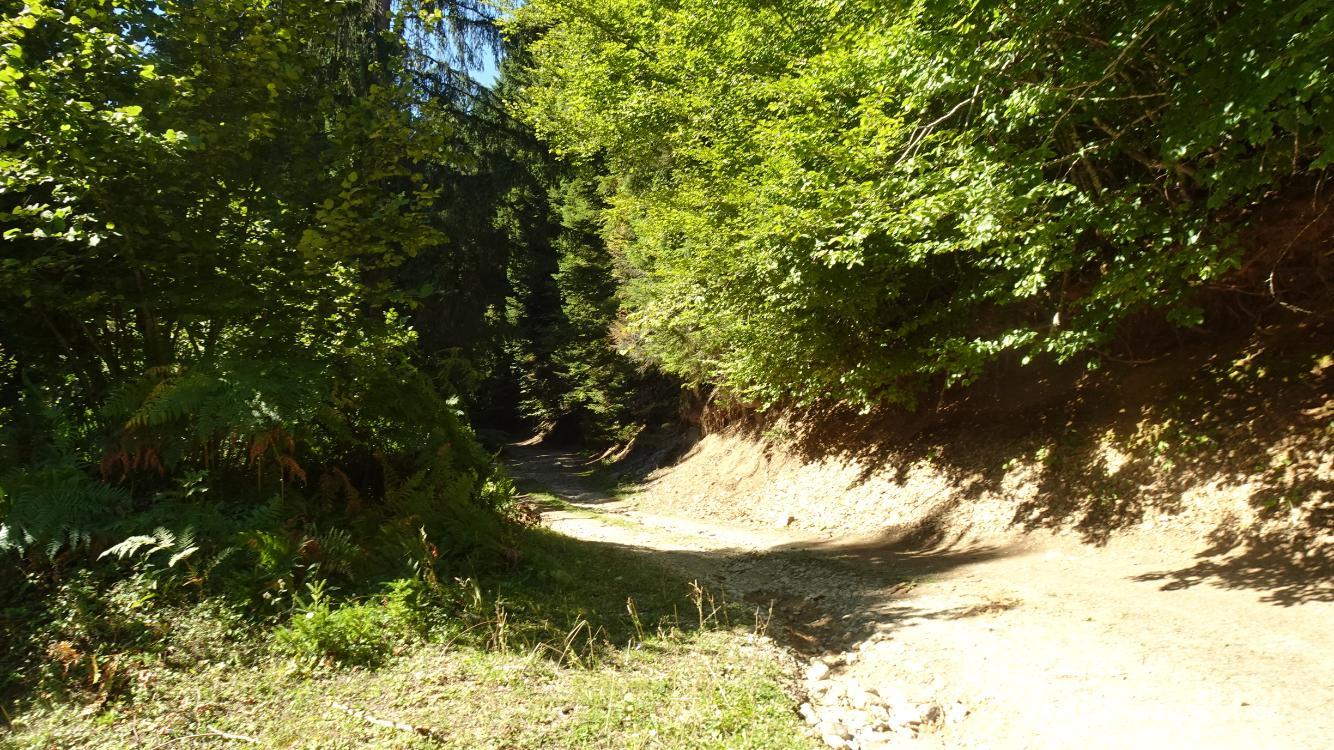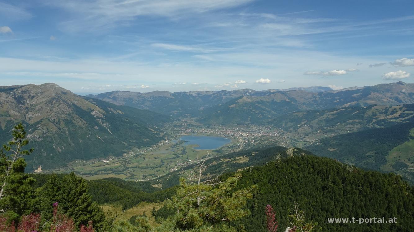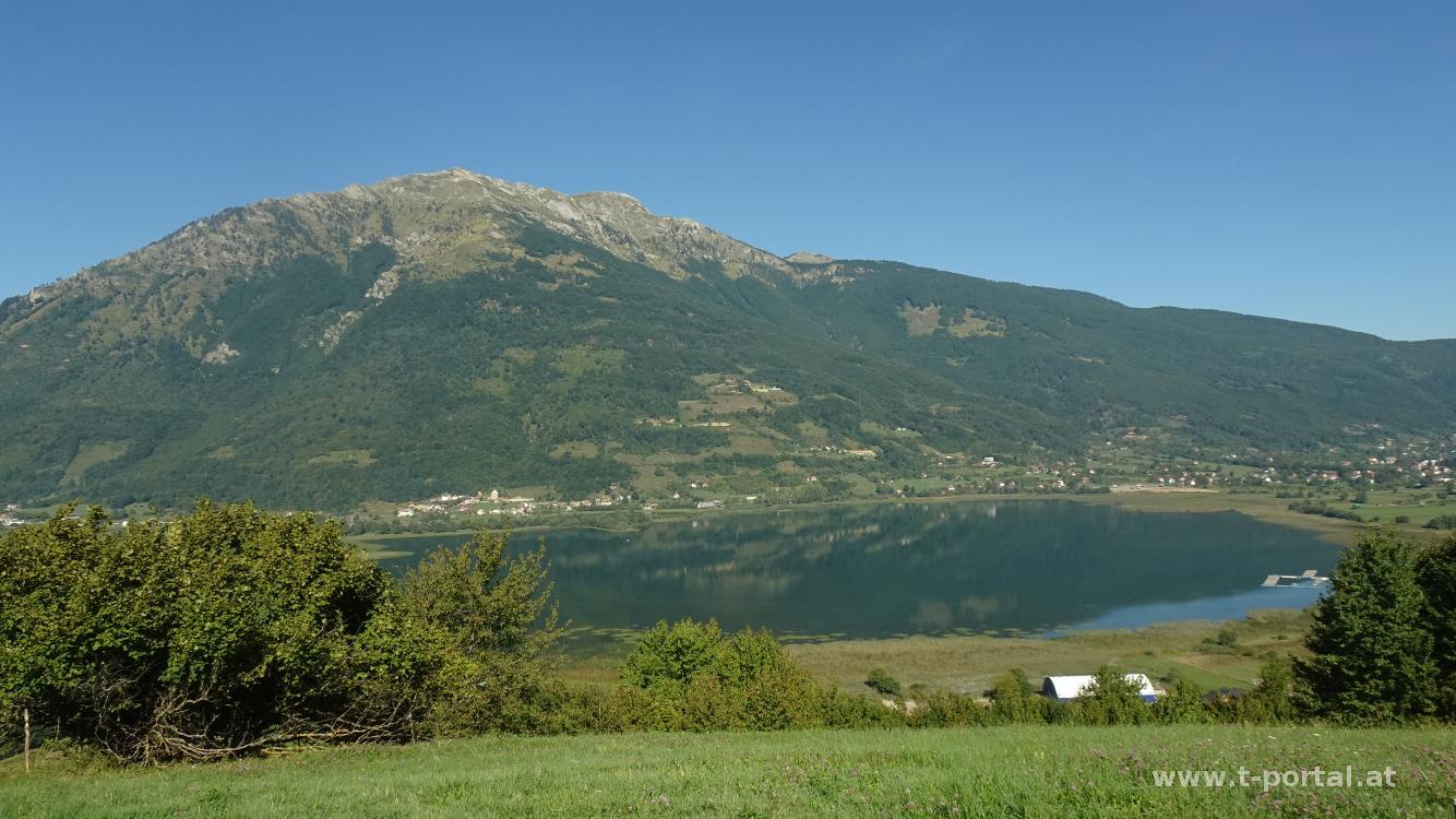 Heute bleiben wir in Montenegro und wandern von Plav nach Vusanje. Vom See geht es ein Stück durchs Dorf und bald wieder auf eine Schotterstraße. Dieser folgen wir ein gutes Stück, kommen an ein paar Baustellen vorbei und erreichen dann die Asphaltstraße bei Vardiste, wo wir gleich mal Eintritt für den Nationalpark zahlen dürfen. Von der Straße geht es nach zwei Kurven etwas nach links hinein in den Wald. Nun geht es, mit einem kurzen Abstecher auf Waldpfaden, einige Zeit lang eine Forststraße aufwärts. Unterwegs treffen wir zahlreiche andere Wanderer, die Etappe dürfte auch als Tagestour beliebt sein. Nachdem wir insgesamt schon gute acht Kilometer gewandert sind, wir aus der Straße dann doch ein Wanderweg und es geht nun auch steiler aufwärts. Durch den Wald errecihen wir eine Wiesenfläche mit schönem Ausblick, bei dem wir (wie auch einige andere) eine kurze Rastpause einlegen.