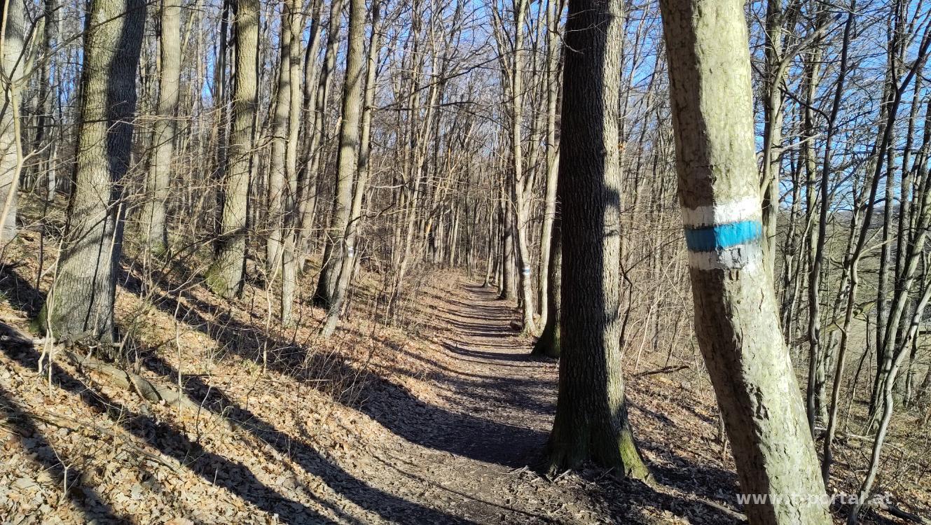Nachdem ich letzte Woche am Stadtwanderweg 7 unterwegs war, gibt es heute die Nummer 6. Nachdem dies von uns aus ziemlich die andere Ecke Wiens ist, komme ich hier (wandertechnisch) kaum vorbei. Der Bus hat mich in Rodaun ausgespuckt, von dort folge ich der Straße noch ein Stück, bis ich nach links zur "Bergkirche Rodaun" abbiege. Dahinter geht es in den Wald, wo ich gleich einen kurzen Umweg zum Ausweg bei der Mizzi-Langer-Wand einbaue. Nun geht es durch Föhrenwald über den Zugberg und vorerst mal immer auf und ab. Dann folgt der Abstieg zu einer Straße mit Mauer nebenan. Dieser folgt man nun bis zur Wiener Hütte. Ich biege dabei immer wieder etwas von der Straße ab und wandere links davon auf schmalen Pfaden durch den Wald.