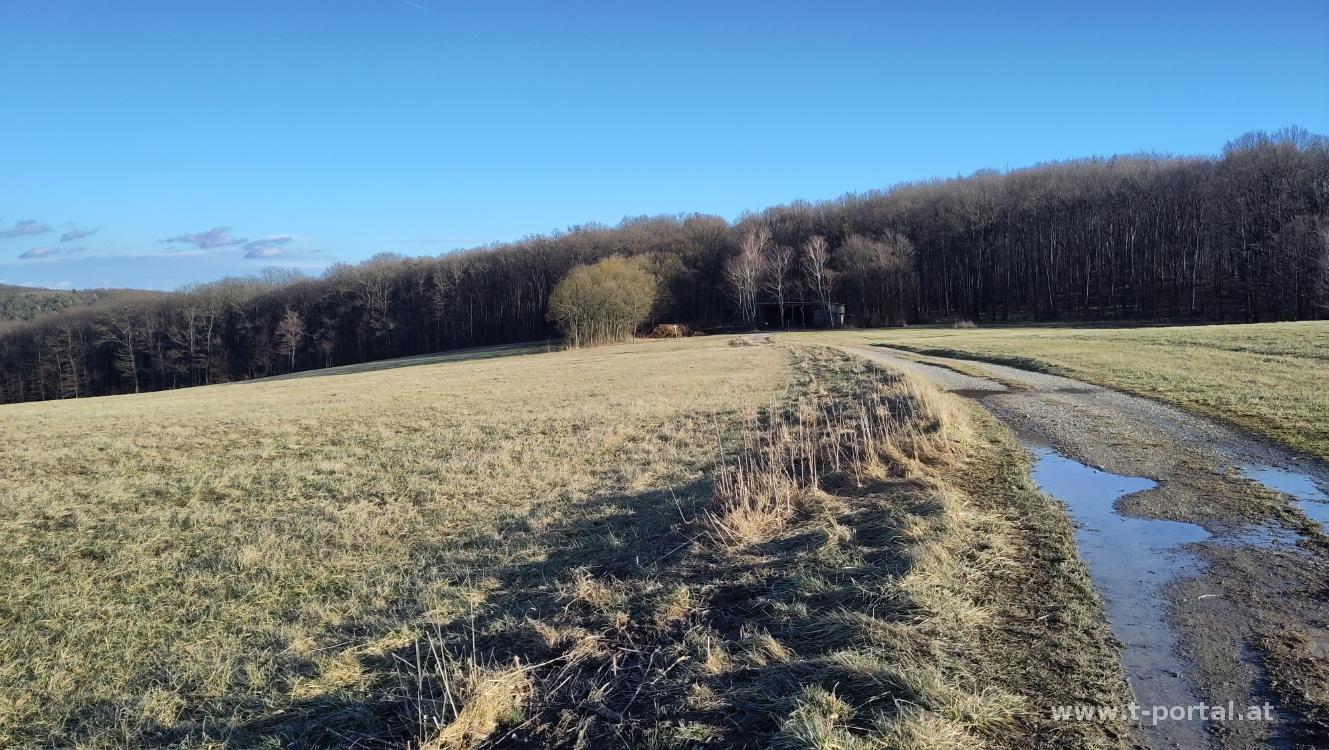 Bei der Wiener Hütte angekommen jausne ich auf einem Bankerl und gehe dann auf der Forststraße hinab. Nach Querung der Bundesstraße geht es wieder in den Wald und bald zur Eichwiese. Der Weg führt über diese und wieder hinab in den Graben. Auf der anderen Seite geht es entlang der Hochquellenleitung aufwärts in den Maurer Wald. Kaum oben angekommen geht es auch schon wieder hinab, bis ich wieder Siedlungsgebiet erreiche.