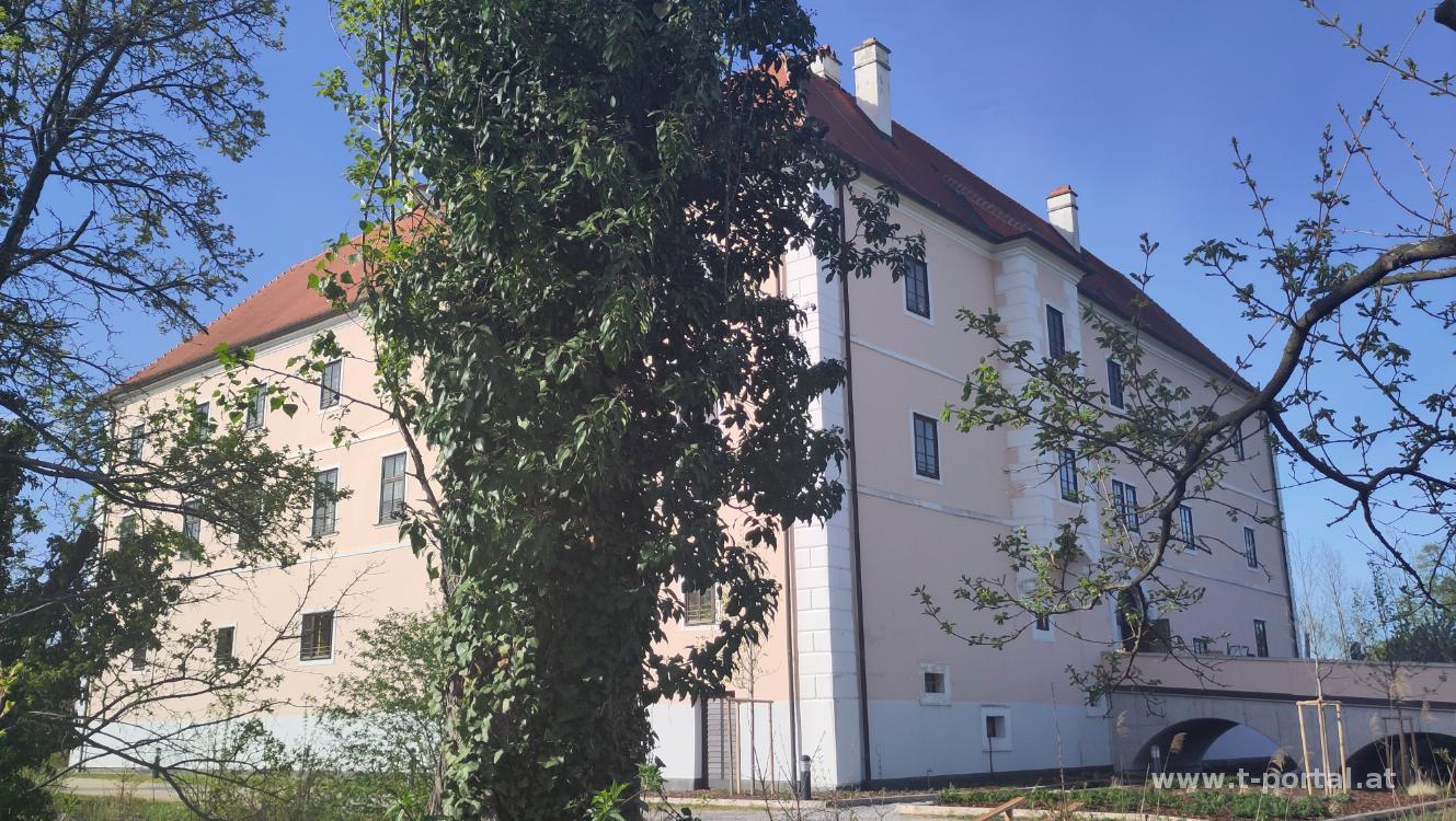Nach Querung des Hans-Dunkl-Park geht es neben dem Inzersdorfer Friedhof schnurgerade dahin, bis ich das Erholungsgebiet Traviatagasse mit Spielplatz und den Dr.-Helmut-Zilk-Wald erreiche. Ich quere die Voralberger Allee und wandere am Thermenradweg zwischen schattigen Bäumen zum Schlosspark Vösendorf. Nach kurzer Rast geht es durch den Ort bis zu einem Park. Hier finde ich noch ein Kreuz und wandere dann ein Stück neben der S1, dann neben der A2 ins Industriegebiet Inzersdorf. Dieser Teil der Strecke ist nun wirklich unspannend, aber irgendwann quert man dann doch die dicke Sterngasse und landet im Draschepark. Auch hier wird am Liesingbach gearbeitet und somit lande ich auf der Triester Straße. Nach einem Stück nach Norden quere ich diese über eine Brücke und blicke zum Forstamt, das schon für die Dreharbeiten von MA2412 gedient hat.