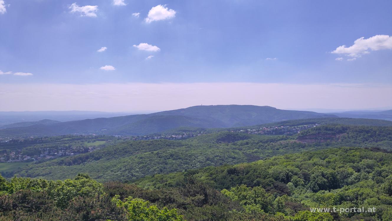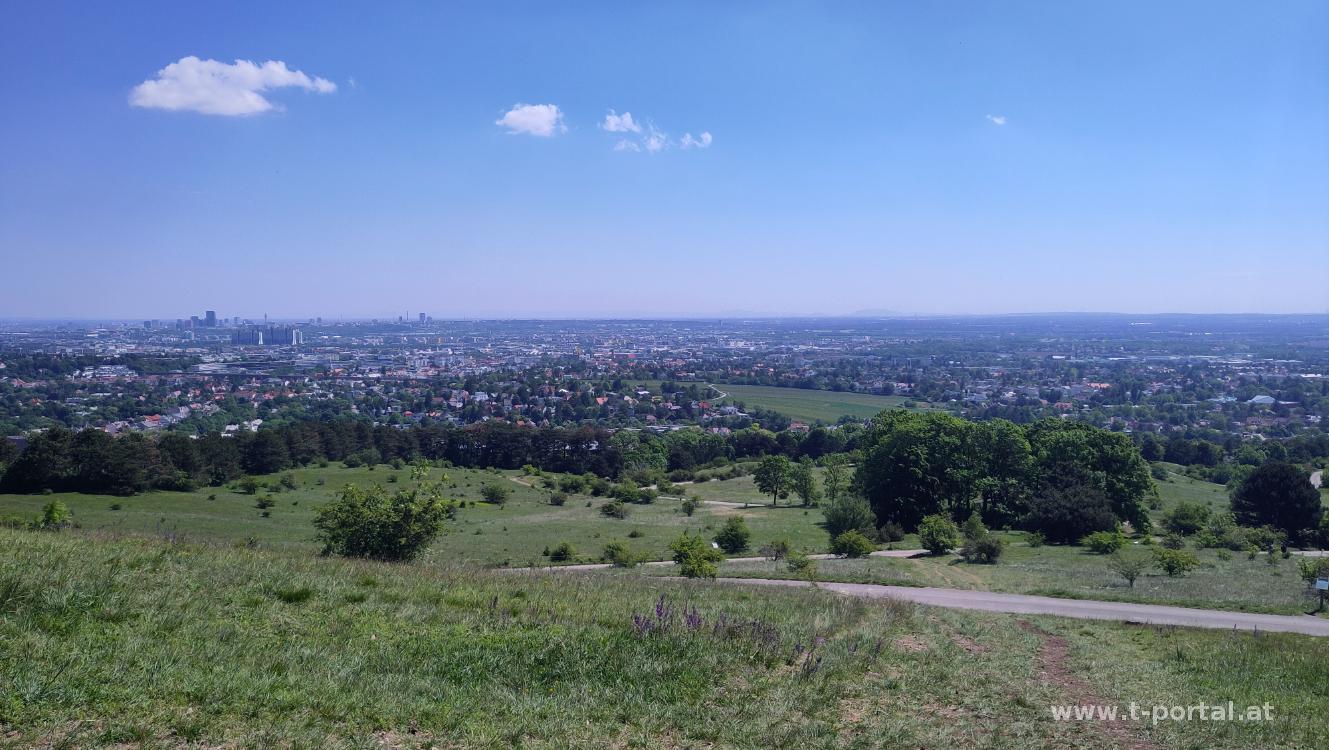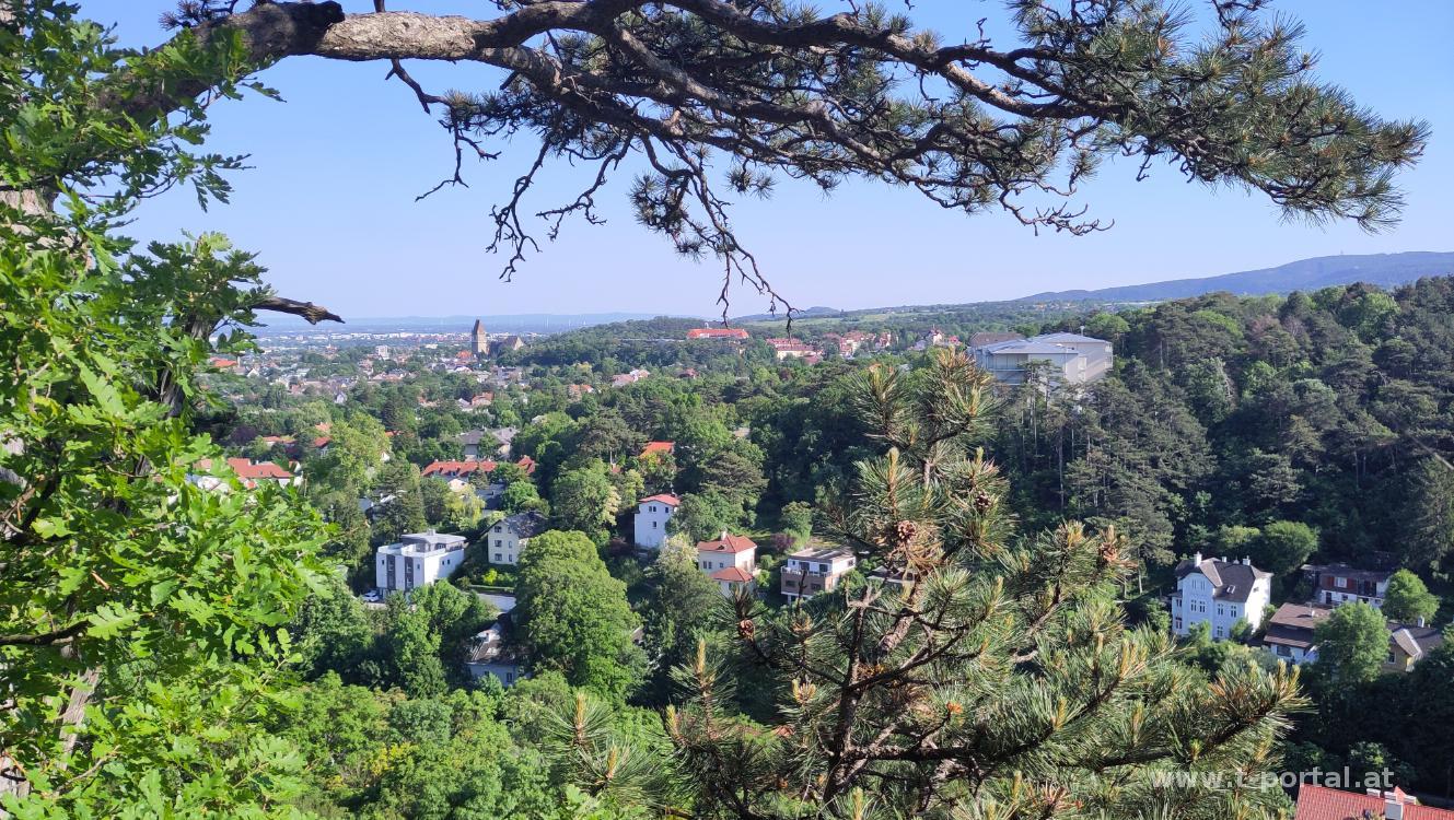 Auch heute steht eine Tour im Wienerwald am Plan. Die Öffis bringen uns nach Rodaun, wo wir den Wallfahrerweg in Richtung Mariazell folgen. Wir queren bald die Stadtgrenze und sind nun in Perchtolsdorf unterwegs. Nach einem Stück durchs Dorf geht es auf einem Pfad neben dem Waldsanatorium Perchtoldsdorf hinauf in die Perchtolsdorfer Heide. Wir blicken einmal zurück in die Stadt und wandern dann hinauf in den Föhrenwald.
