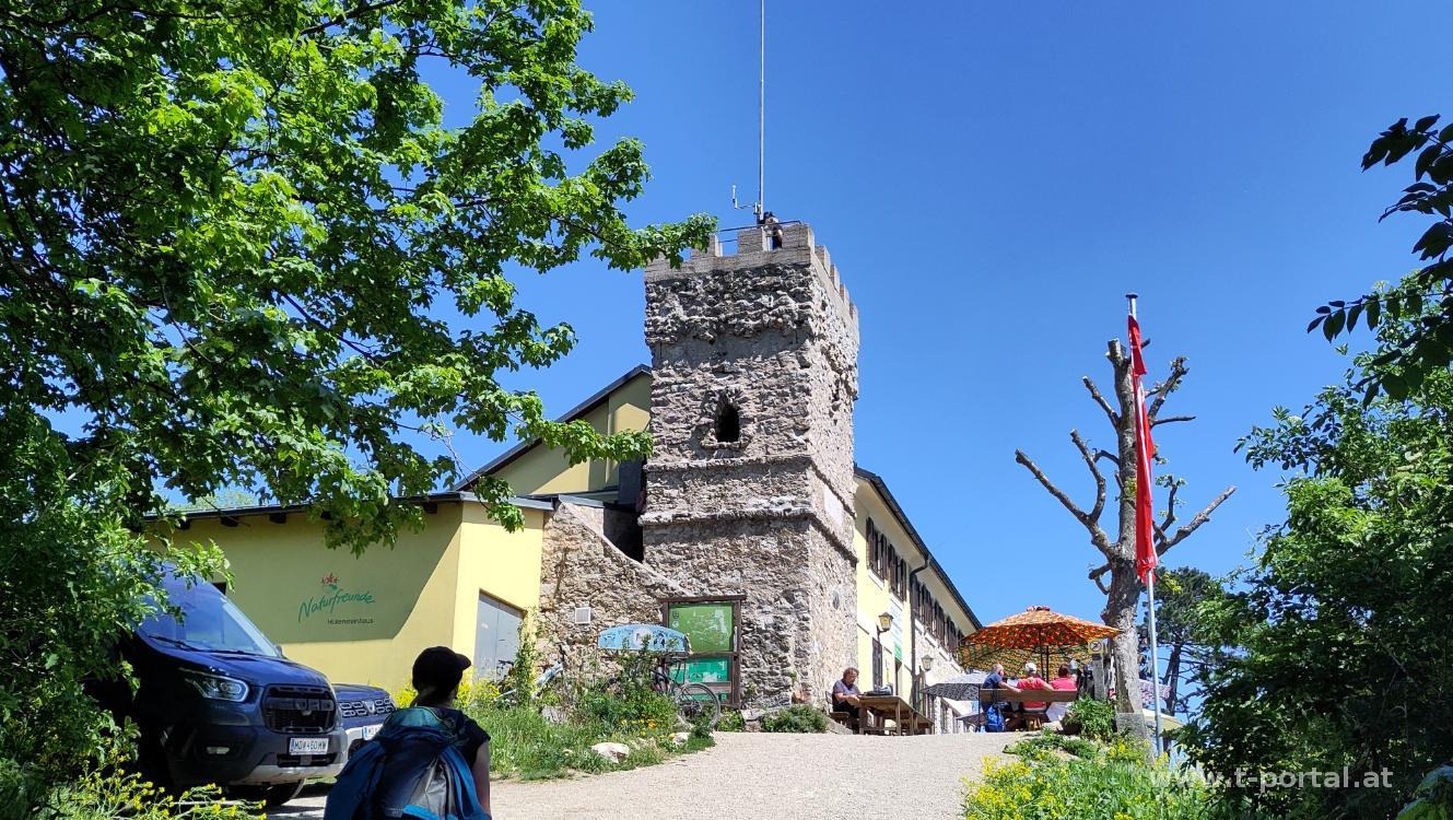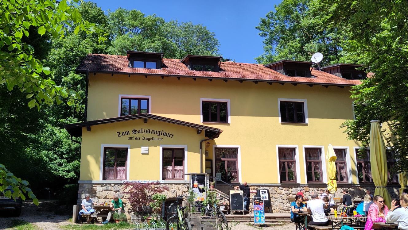 So kommen wir beim "Gasthaus zum Salzstanglwirt" bei der Kugelwiese vorbei und später beim Ehemaligen Gasthof Seewiese. Es fehlen uns noch ein gutes Stück, das wir zumindest teilweise auf einem Wiesenpfad gehen können, bevor wir nach links zum Höllenstein abbiegen können. Dorthin geht es nochmal hinauf und auch hier gibt es eine Hütte mit integriertem Aussichtsturm (Höllensteinhaus/Julienturm). Wir blicken in die Gegend, gehen ein Stück retour und besuchen noch den Höllensteinfelsen, den wir für eine Jausenpause nutzen.
