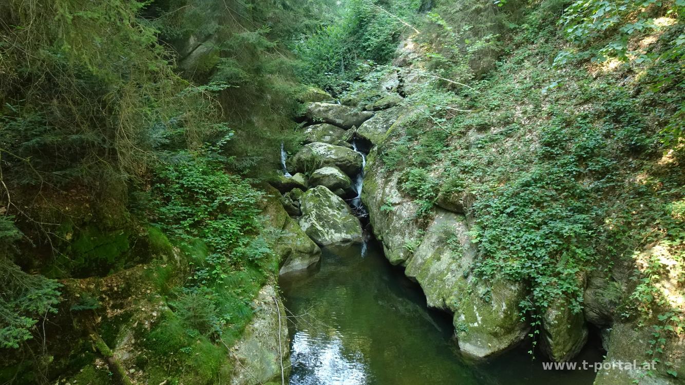 Bevor wir die Heimreise antreten besuchen wir an unserem "Klamm-Wochenende" auch noch die Stillensteinklamm. Wir starten an der Donau und gehen über die Straße zur Gießenbachmühle. Nun geht es auf eine Forststraße immer dem Gießenbach entlang. Weiter vorne geht es kurz über eine Holzbrücke und dann auf Waldpfaden und Forststraßen weiter aufwärts. Erst weiter oben wird es etwas "klammiger" und es geht über Holzbrücken und neben Holzgeländern vorbei an Wasserfällen. Nach kurzem Zick-Zack erreichen wir den namensgebenden "Stillen Stein". Der Weg führt vorbei an einer Sitzbadewanne und nach erneuter Brücke über den Gießenbach erreichen wir eine Forststraße. Diese führt uns bis zum Stausee.