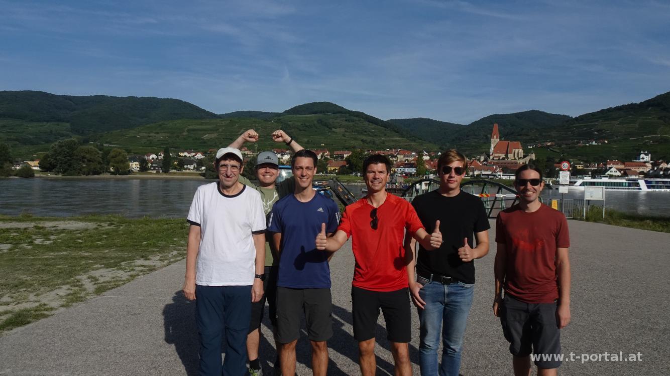 Wir nutzen den Rastplaz neben der Warte für unsere Mittagspause und gehen anschließend nach links hinab. Auf der Forststraße ein gutes Stück dahin, bis wir den Abzweiger nach St. Lorenz erreichen. Hier wandern wir nach links in den Graben hinab und diesen entlang zurück ins Dorf. Neben den Weingärten geht es zum Donauradweg und auf diesem zurück zum Ausgangspunkt.