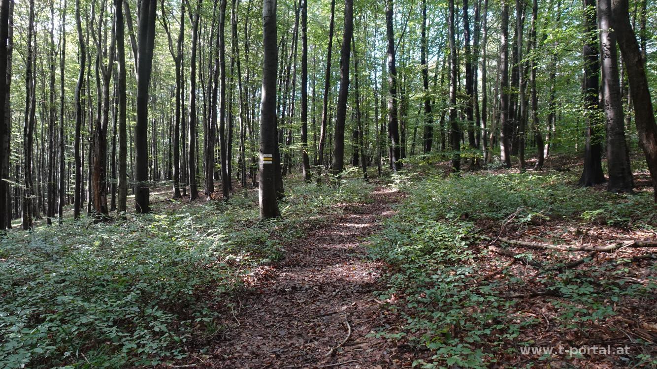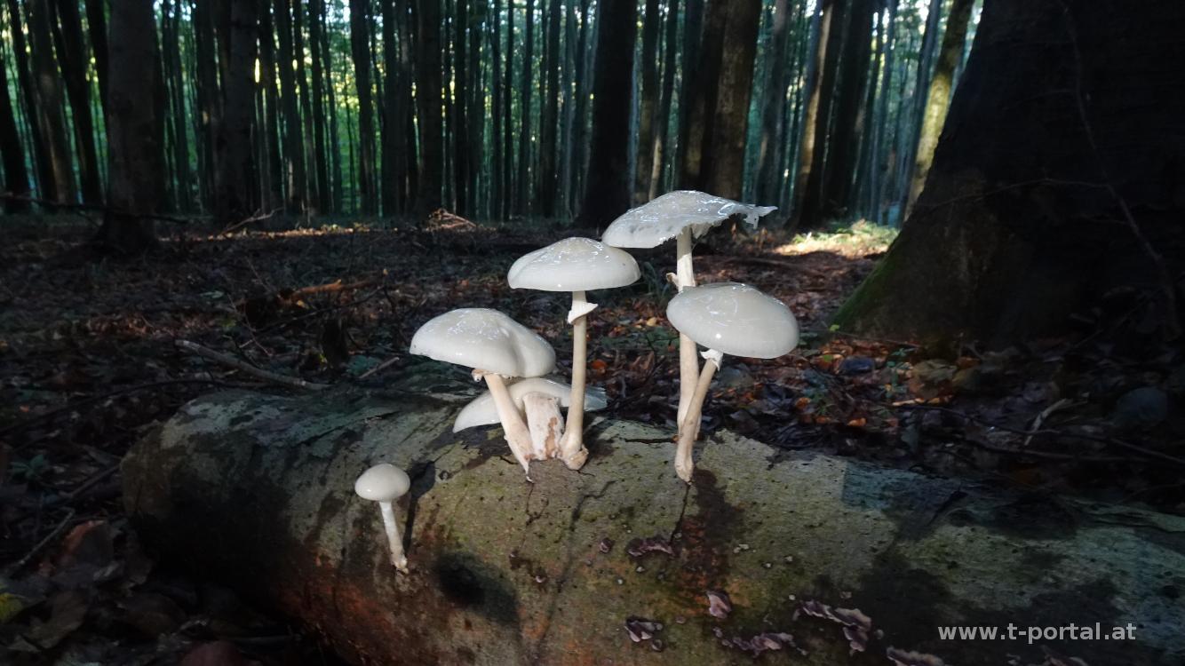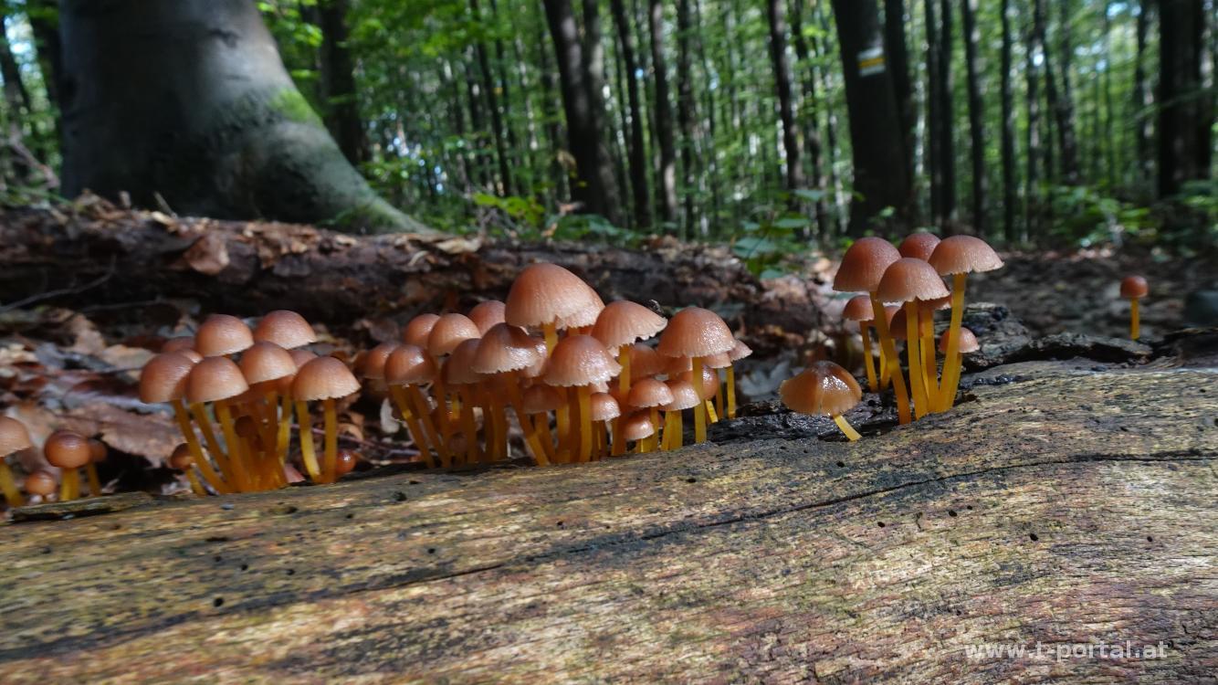 Nach zahlreichen Aussichtstürmen im Wienerwald geht es heute auf den Troppberg. Der Bus bringt uns nach Gablitz, wo wir unsere Runde starten. Entlang des Gablitzbach geht es am Evolutionsweg in Richtung Nordosten. Weiter vorne erreichen wir Siedlungsgebiet und folgen der Höbersbachstraße leicht bergan. Beim nächsten Wegweiser geht es nach rechts und in den Wald. Hier liegen nach den Unwettern einie Bäume über den Weg. Nach etwas Ansteig wenden wir uns nach links und folgen dem Pfad. Dieser führt uns immer leicht bergan, vorbei an vielen Schwammerln und vorbei an einer Wiese, wo wir etwas pausieren.