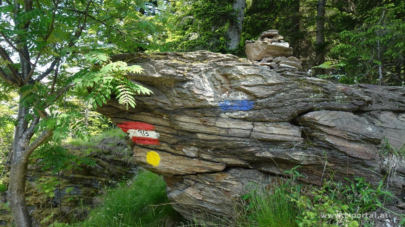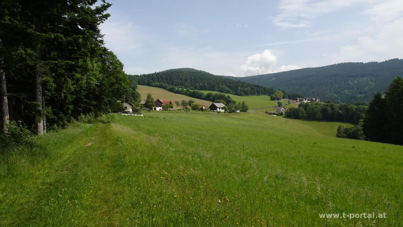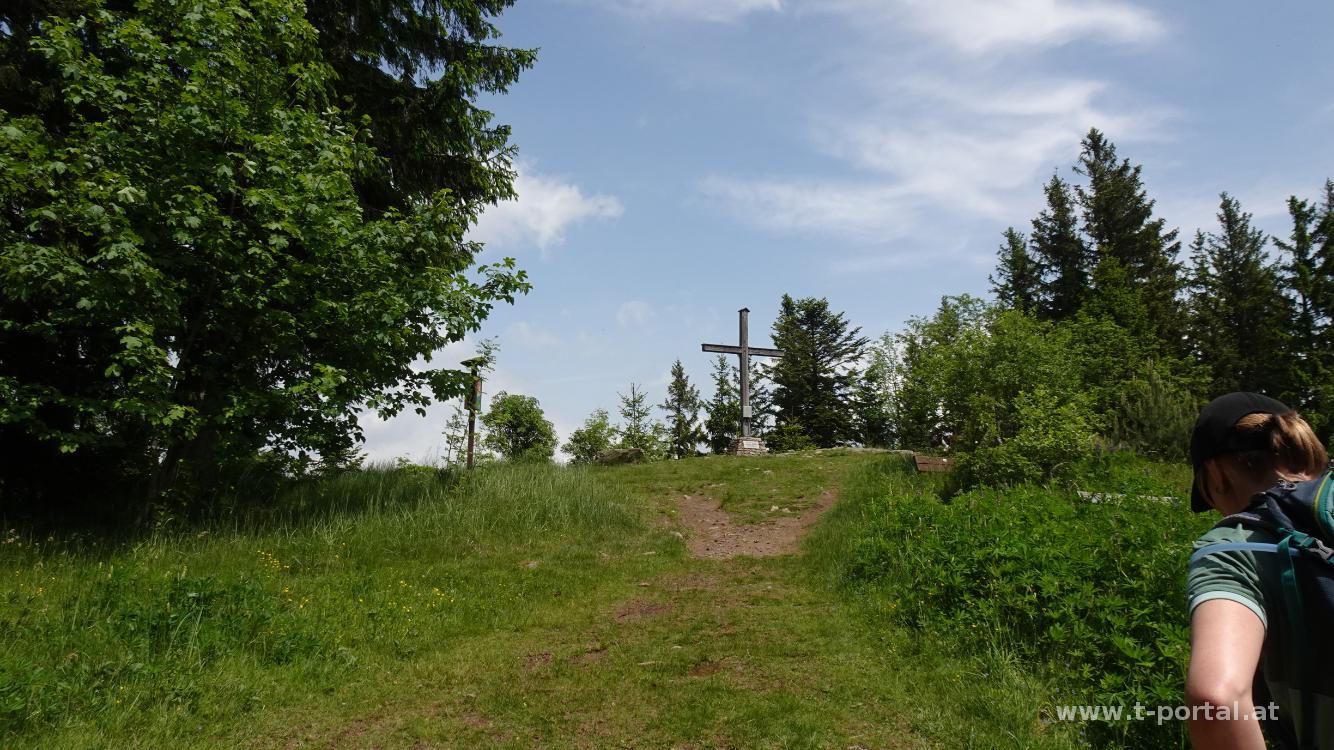 Wir urlauben in der Gegend und machen heute eine kurze Wandertour. Von Pöllauberg geht es über Wald und Wiesen zu den nächsten Häusern und dort entlang einer Wander und MTB Strecke weiter aufwärts. Es ist ganz gut warm, bis wir am Gipfel vom Masenberg einen frischen Wind finden.
