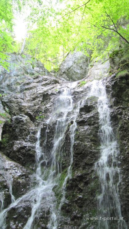 Start ist im Schindeltal/Kreuzung Engeltal (490m), das erreicht man indem man zwischen Traisen und Hainfeld in Wiesenfeld Richtung Süden abbiegt und bis zum Fahrverbot weiter fährt. Nun geht es erst flach an einigen Jagdhäusern und Höfen vorbei, anschließend weiter auf Forststraßen bergan. In einer Linkskehre kann man rechts zum kleinen Wasserfall abbiegen. Da läuft gerade mehr Wasser drüber, als noch vor zwei Wochen am Wasserfallsteig/Lilienfeld. Noch ein Stück der Forstraße gefolgt endet diese bei einem Hochstand. Ab hier geht es steiler bergauf bis zur Kleinzeller Hinteralm. Zwischendurch gibt es auch die ersten Blicke zum Hochstaff, Traiser Hinteralm und Muckenkogel.