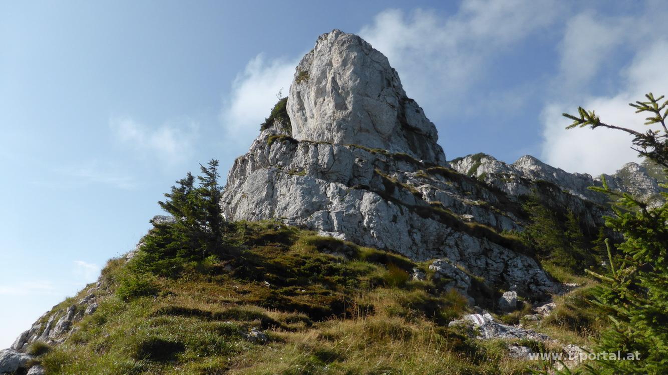 Mein Auto stellte ich in Raneck ab. Von dort geht es die Forststraße runter bis nach Bärenlacken. Hier zweigt man in den Wald ab, wo es auch schon mal steiler bergauf geht. Nach knappen zwei Stunden steh ich vor dem rauhen Kamm. Ich gewöhne mich schnell an die 1er Kraxelei und komme gut voran, die Felshügel wechseln sich mit kurzen Gehstücken ab und bald ist die Hälfte erreicht. Der Blick vor und zurück ist immer wieder sehr cool anzusehen.