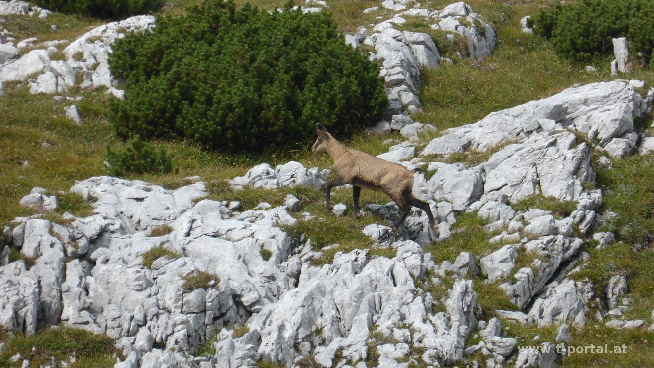 Vom Preiner Gscheid geht es über einen Wald und Wiesenweg bergauf, man quert ein paar Mal die gleiche Forststraße und gelangt zur Abzweigung Schlangenweg/Waxriegelhaus. Beim Waxriegelhaus komm ich im Abstieg vorbei. Den Schlangenweg kürz ich im ersten Stück etwas ab und geh gleich steiler rauf, bis ich zur Abzweigung vom Karl Kantner Steig komme. Nun am Schlangenweg weiter bis zum Karl Ludwig Haus. Das Wetter ist durchwachsen, es regnet zwar nicht, dafür geht der Wind und die Wolken ziehen herum. Nachdem es noch zu früh für eine Mittagspause ist, geh ich gleich auf die Heukuppe. Den Gämsen am Weg ist das ziemlich egal. Oben angekommen seh ich viel. Viel Nebel.