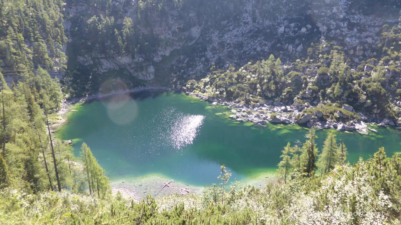 Start ist bei Schachen bei Bad Aussee neben dem Grundlsee. Es geht zuerst auf einem Forst, dann über einen Waldweg bergauf. Am Weg seh ich sogar eine Höhlenotter, diese flüchtet jedoch schneller als ich fotografieren kann. Nach ca. 1h45 bin ich beim vorderen Lahngangsee angekommen. Ich wandere am Ufer vorbei und raste am Ende des Sees.