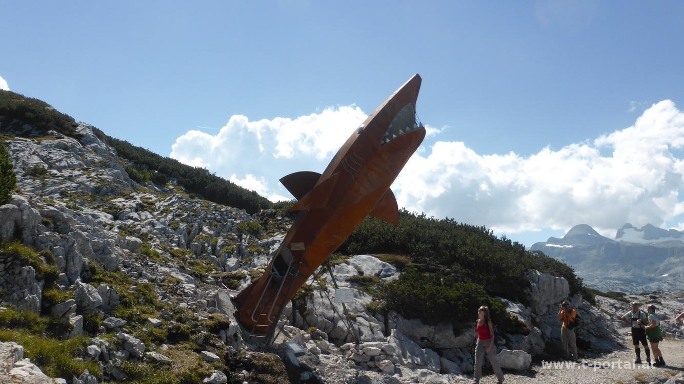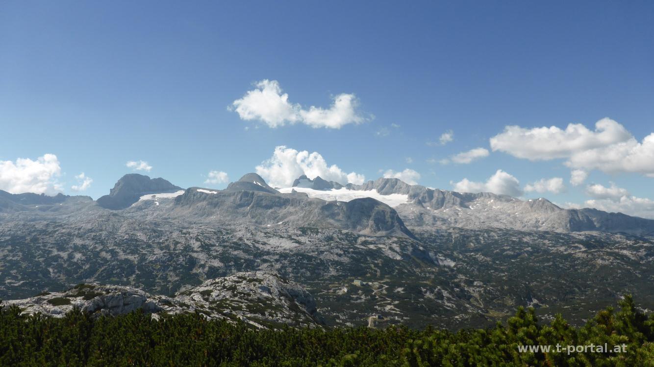 Danach geht es mit der Seilbahn weiter zum Großen Krippenstein. Bei traumhaften Wetter lacht mir der Dachstein mit seinen Gletschern an. Ein kurzer Spaziergang bringt mich zur Aussichtsplattform Five Fingers mit Blick auf den Hallstätter See. Nun nehme ich den Heilbronner Rundwanderweg in Angriff, dieser führt auf einer Schotterstraße an einigen Aussichtspunkten vorbei zur Station Gjaidalm. Nach Stärkung mit Schokokuchen geht es mit den Seilbahnen zurück ins Tal.
